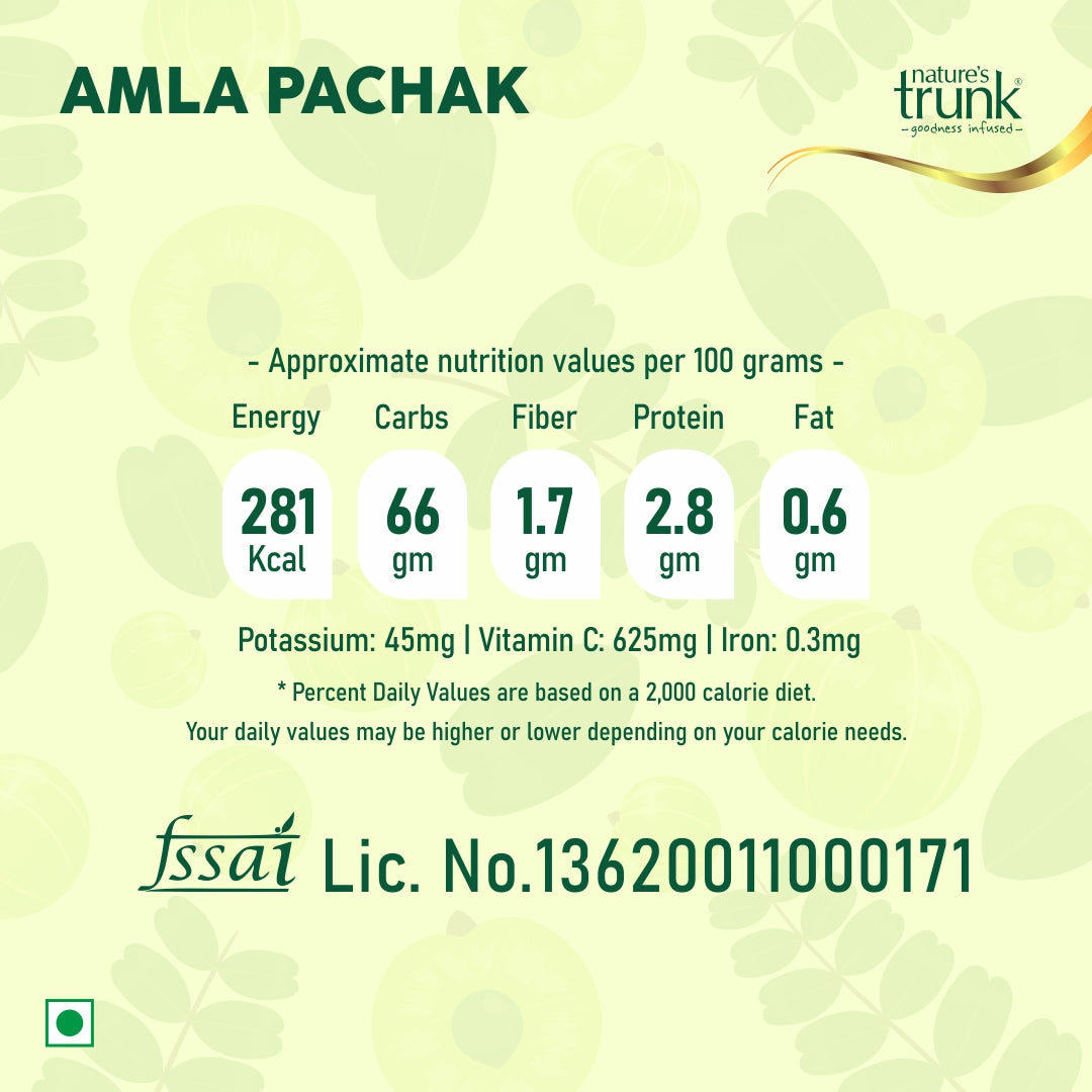 Amla Pachakis crafted from carefully sorted Amla, ensuring top quality and flavour. This tangy delight is perfect for enjoying on its own or as a complement to meals, providing a refreshing experience.