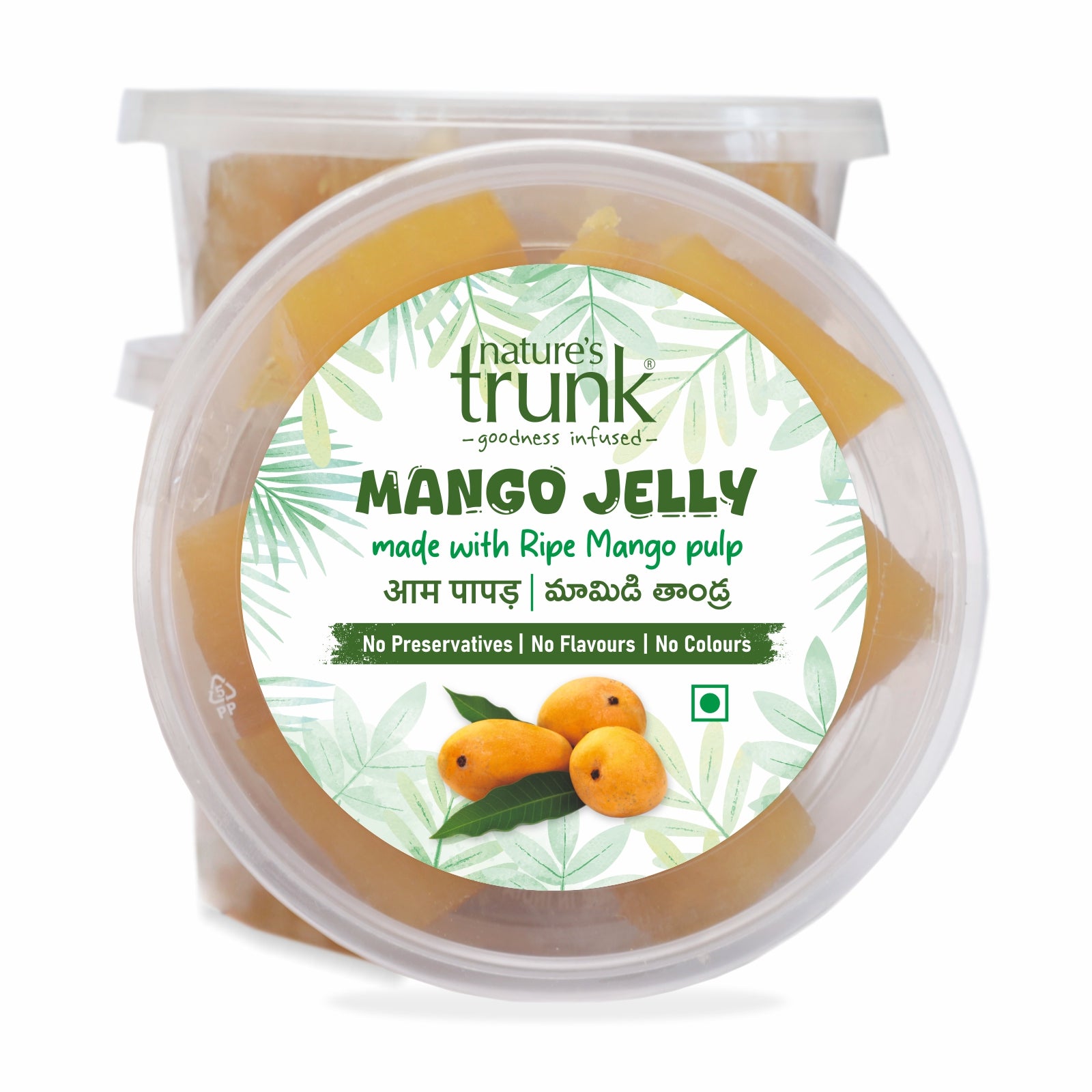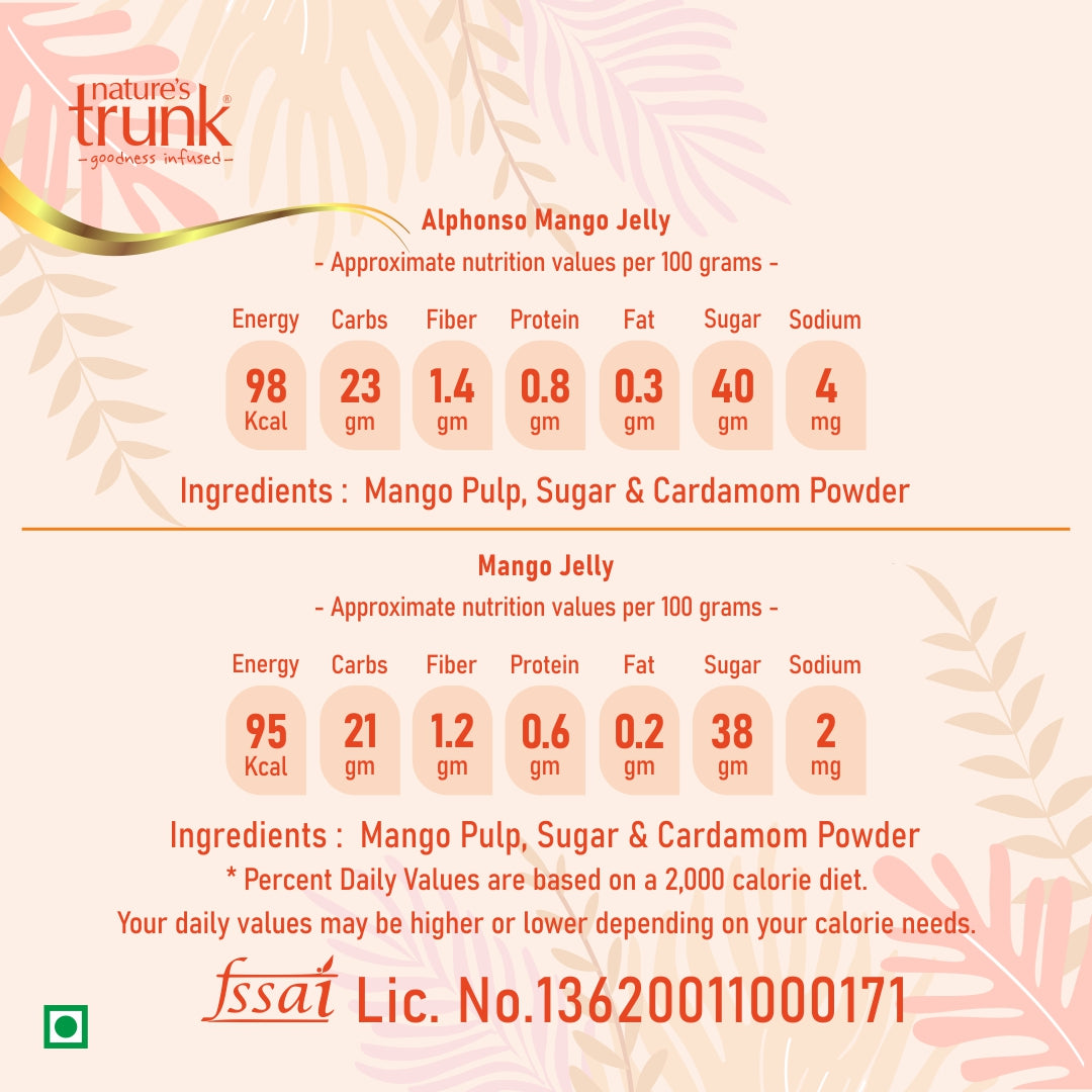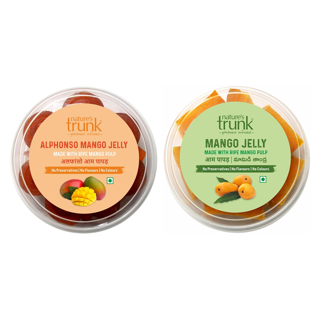 Nature’s Trunk brings you the ultimate mango delight combo—Alphonso Mango Jelly (250g) paired with Mango Jelly (250g). Crafted with real mango pulp and no artificial colours or preservatives, this combo offers two fruity textures that capture the essence of summer in every bite.