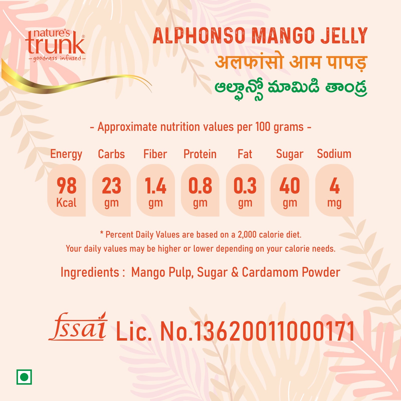 Enjoy a delicious combo of Alphonso Mango Jelly and Classic Mango Jelly (Mamidi Tandra/Aam Papad)—made with natural ingredients, no preservatives, and packed with the rich taste of real mangoes. A perfect sweet treat for all ages.