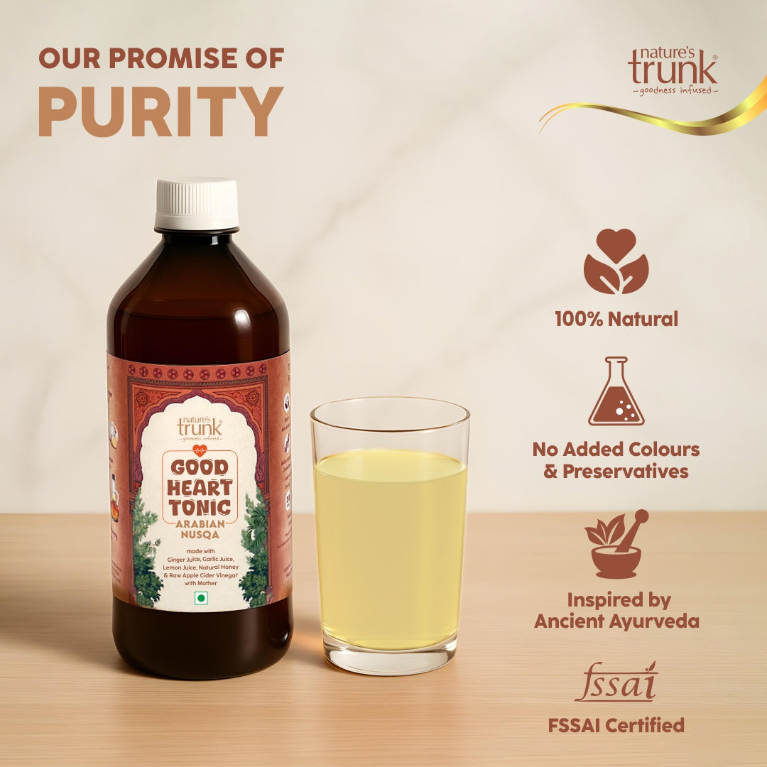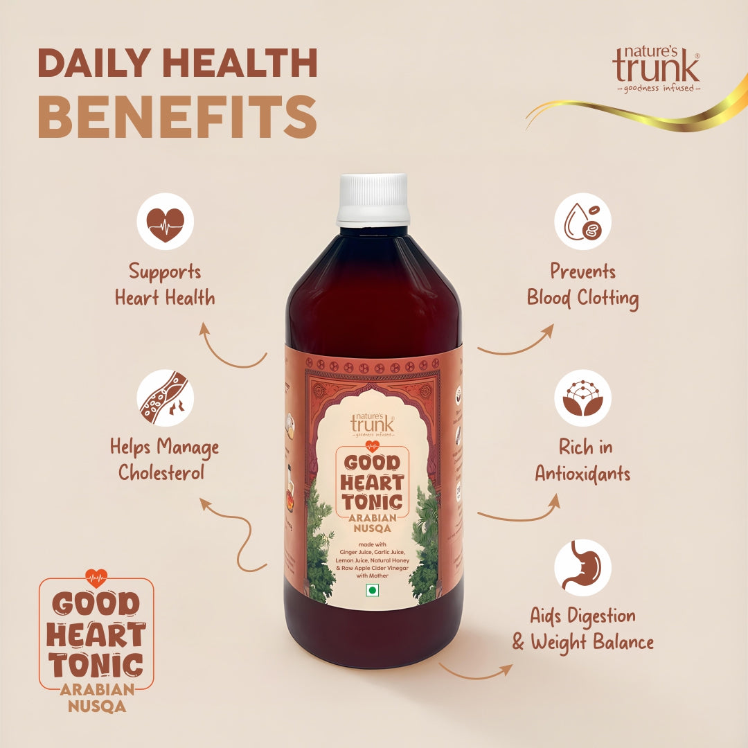 Good Heart Tonic – Arabian Nusqa is a time-tested blend of Garlic, Ginger, Lemon, Raw Apple