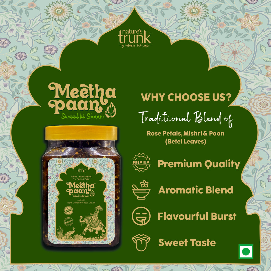 Enjoy the rich flavours of Meetha Paan, a traditional snack that combines taste and convenience seamlessly!