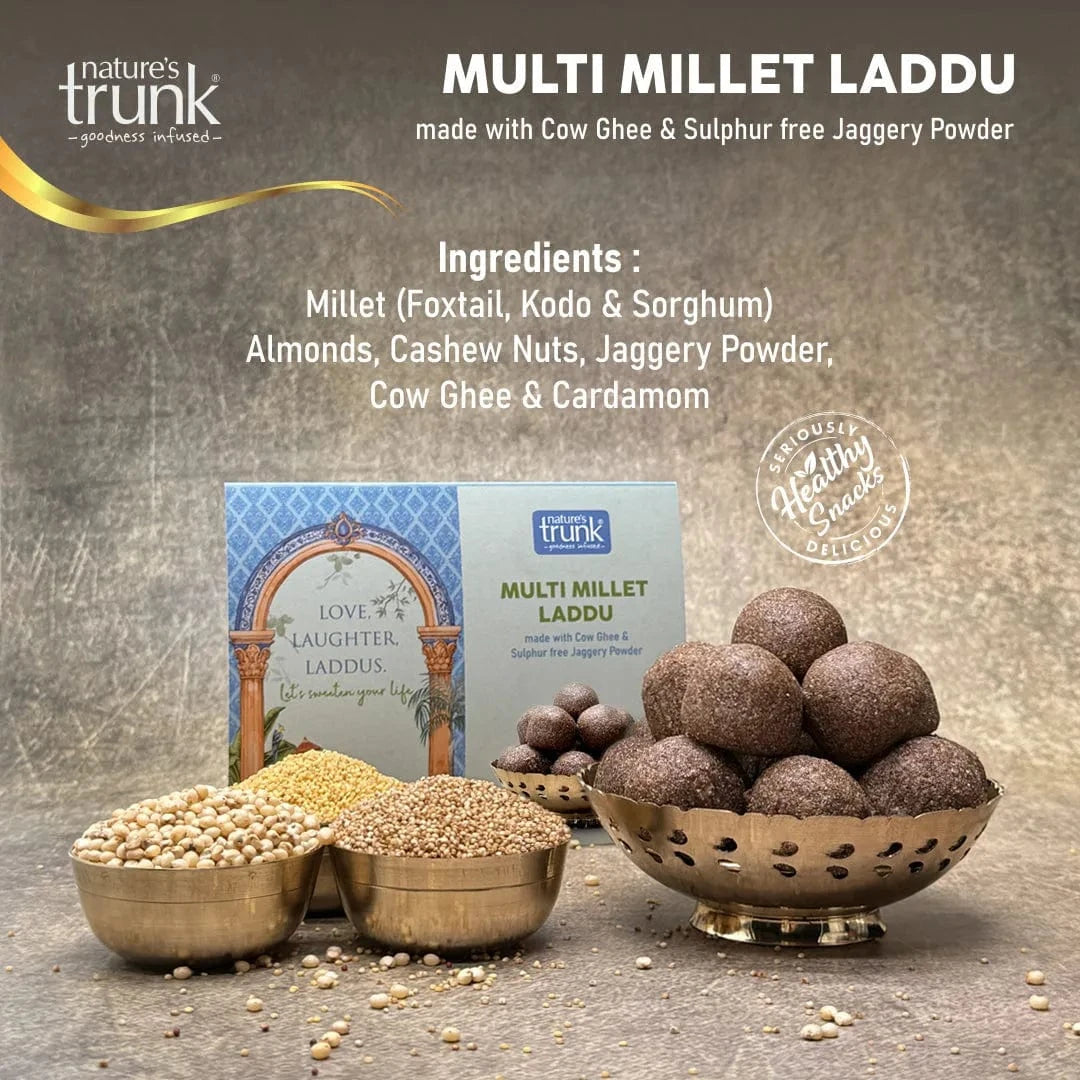 Multi Millet Laddu is a wholesome sweet blend of millets and nuts, crafted to provide a nutritious treat for every occasion!