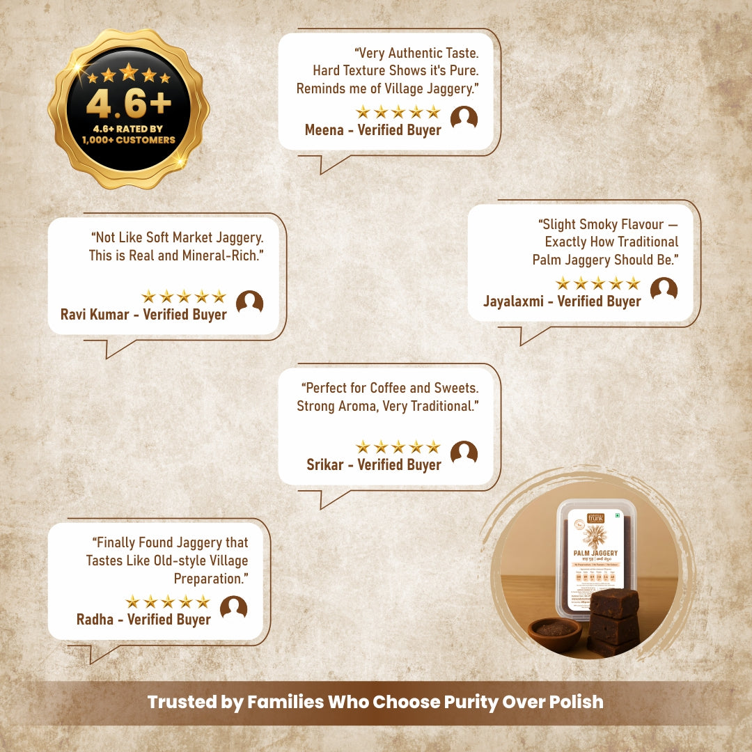 Chemical-Free Goodness: Nature's Trunk Palm Jaggery contains no added flavours, colours, or preservatives. Every bite is a pure and wholesome delight that reflects our commitment to natural goodness.